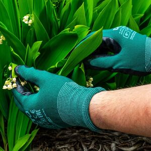 A Verto nitrilbevonatú kerti védőkesztyű testhezálló, légáteresztő külső anyagból készül, amely kényelmes viseletet biztosít hosszabb munkavégzés közben is. A tenyérrészen és az ujjakon található nitril bevonat javítja a fogást és csúszásgátló tulajdonságokat ad a kesztyűnek.